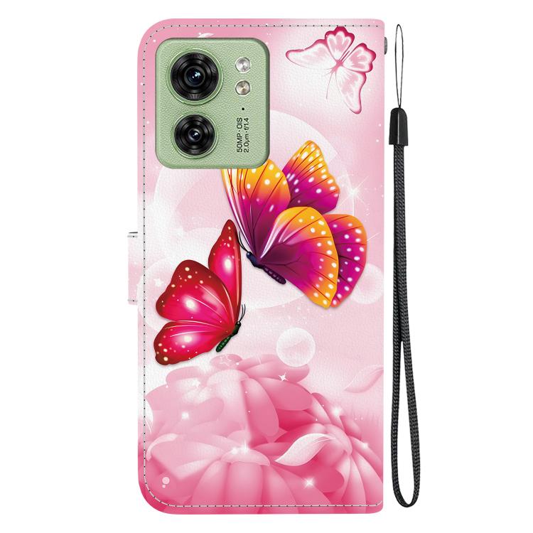 Funda de Cuero para Motorola Edge 40 con Dibujo de Colores y Textura de Cristal (Mariposas Rosas)