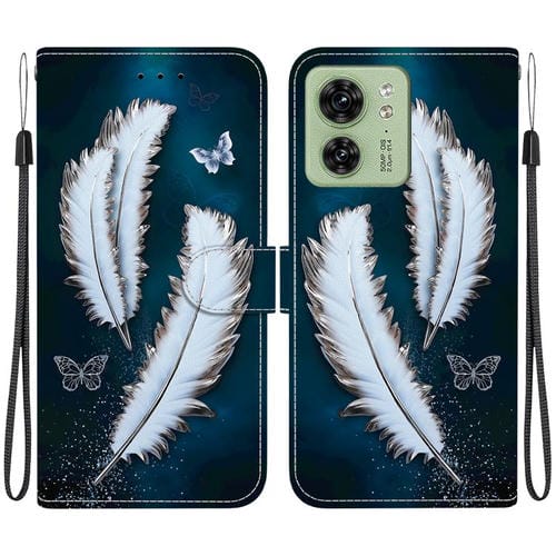 Funda de Cuero con Dibujo y Textura de Cristal para Motorola Edge 40 (Plumas de Mariposa Blancas)