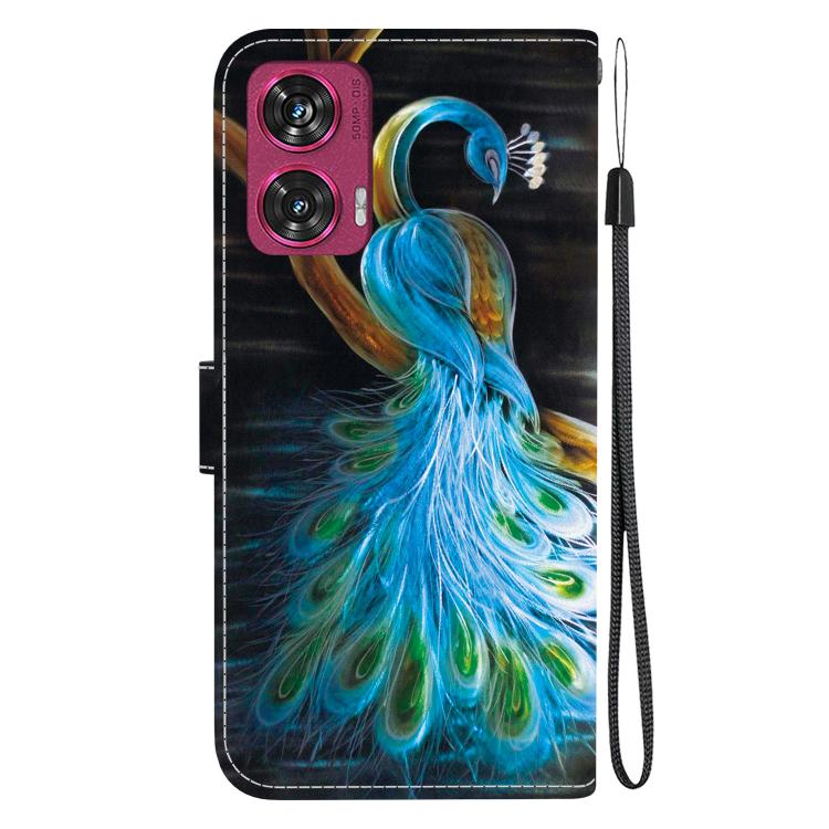 Funda de Cuero Motorola Edge 50 Fusion con Dibujo de Colores y Textura de Cristal (Pavo Real)