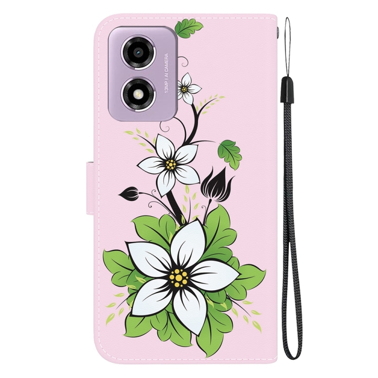 Funda de Cuero Motorola Moto G04S Moto E14 con Dibujo de Colores y Textura de Cristal (Lily)