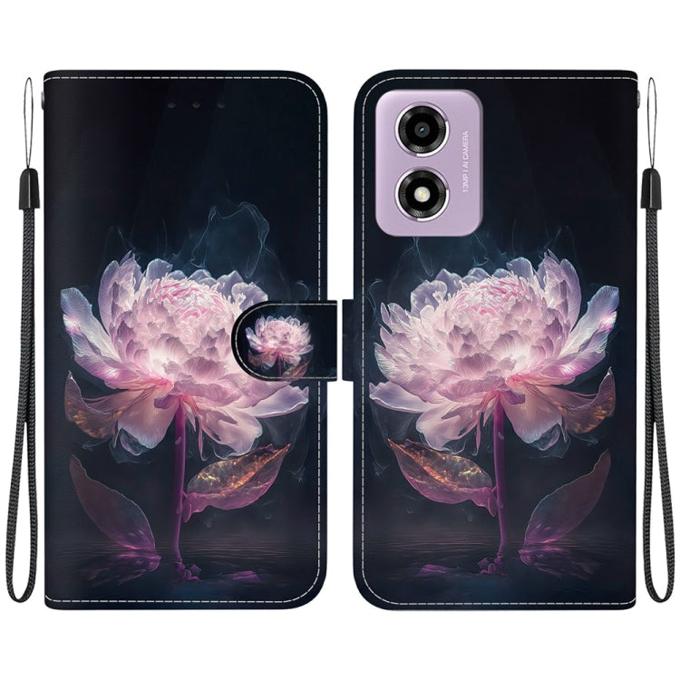 Funda de Cuero con Dibujo de Colores y Textura de Cristal para Motorola Moto G04S Moto E14 (Peonía Morada)
