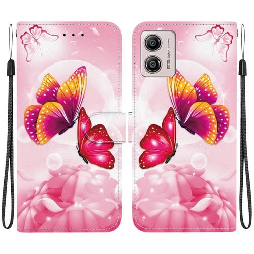Funda de Cuero Motorola Moto G13/G23/G53 con Dibujo de Colores y Textura de Cristal (Mariposas Rosas)