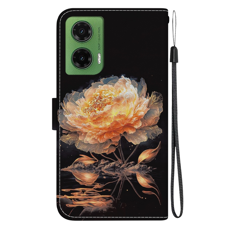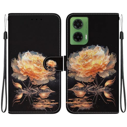 Funda de Cuero Motorola Moto G35 con Dibujo de Colores y Textura de Cristal (Peonía Dorada)