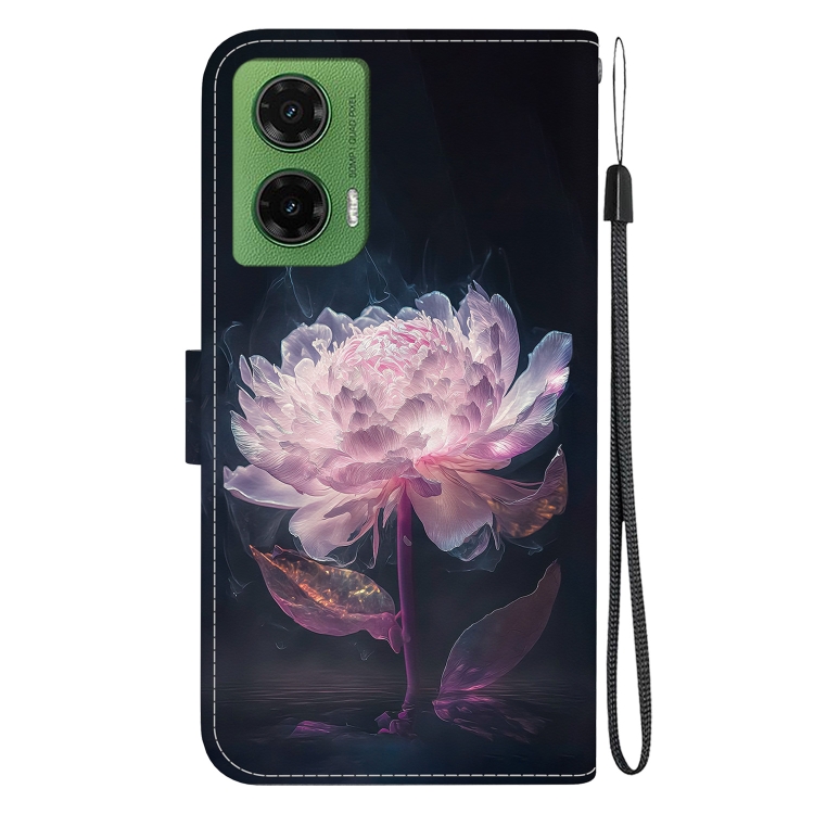 Funda de Cuero Motorola Moto G35 con Dibujo de Colores y Textura de Cristal (Peonía Morada)