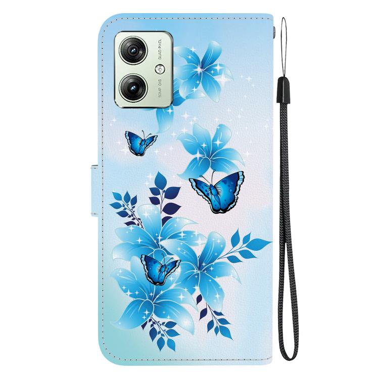 Funda de Cuero para Motorola Moto G54 con Dibujo de Colores y Textura de Cristal (Mariposas Azules)