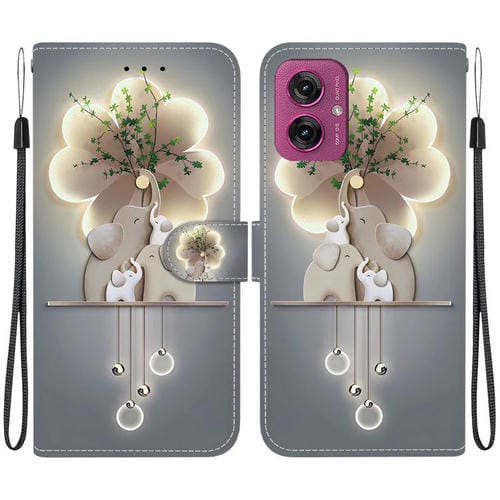 Funda de Cuero Motorola Moto G55 con Dibujo de Colores y Textura de Cristal (Elefantes)