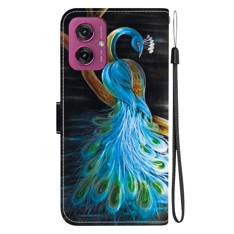 Funda de Cuero Motorola Moto G55 con Dibujo de Colores y Textura de Cristal (Pavo Real)