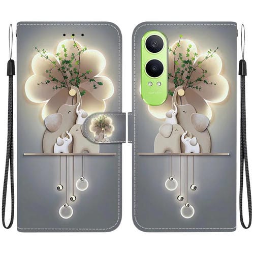 Funda de Cuero para OnePlus Nord Ce4 Lite con Dibujo de Colores y Textura de Cristal (Elefantes)