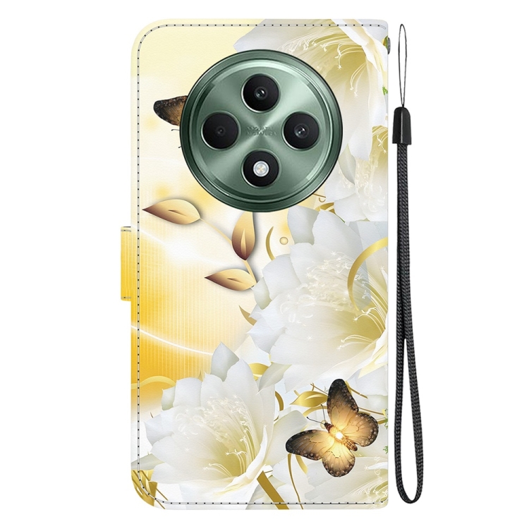 Funda de Cuero con Dibujo de Colores y Textura de Cristal para Oppo Reno12 F 5G (Mariposa Dorada Epiphyllum)
