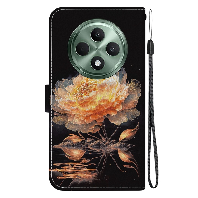 Funda de Cuero con Dibujo de Colores y Textura de Cristal para Oppo Reno12 F 5G (Peonía Dorada)