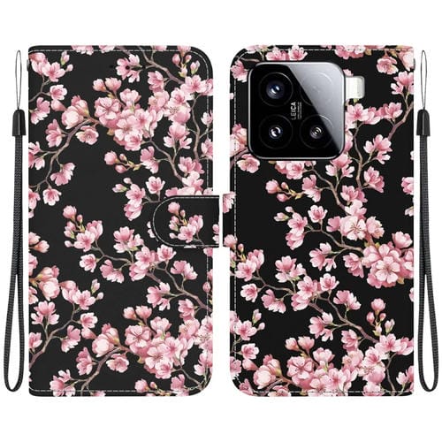 Funda De Cuero Con Dibujo De Colores Y Textura De Cristal Para Xiaomi 15 (Flor De Ciruelo)