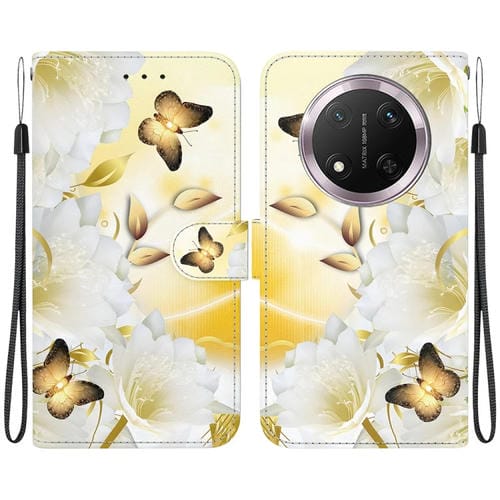 Funda de Cuero para Honor X9C con Dibujo Mariposa Dorada Epiphyllum y Textura de Cristal