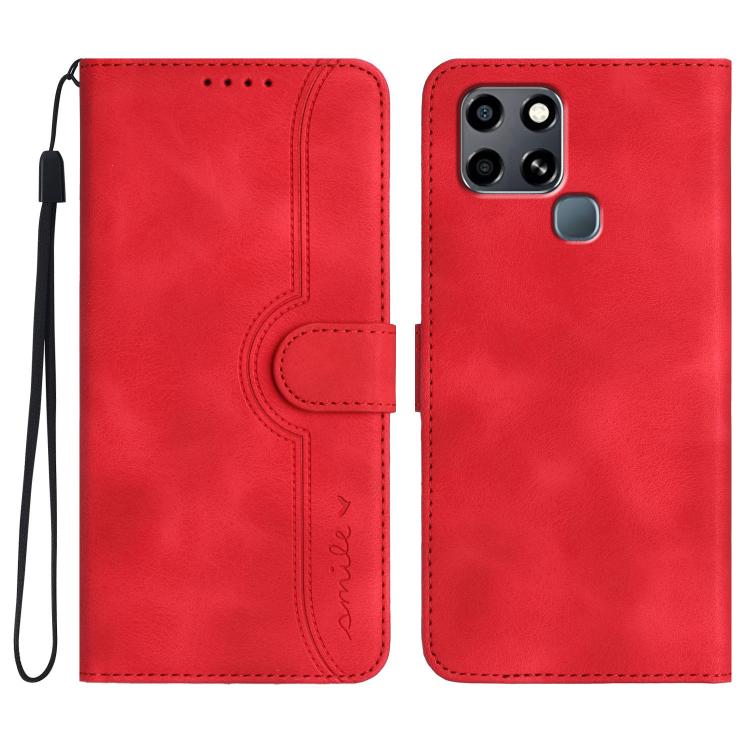 Funda de Cuero con Diseño de Corazón para Infinix Smart 6 y Smart 6 HD (Rojo)