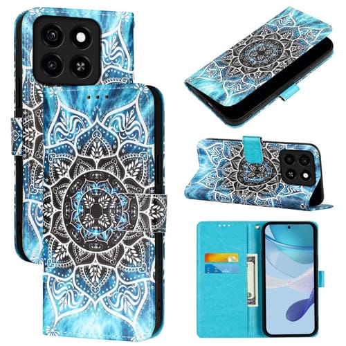 Funda de Cuero para ZTE Blade A35/A55 con Diseño Mandala Submarina (Color Liso)
