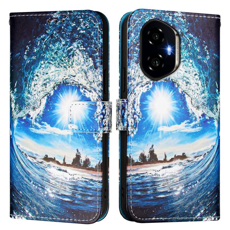 Funda de Cuero para Teléfono Honor 300 (Ondas y Sol) Color Liso