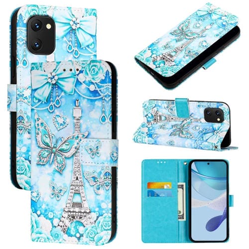 Funda de Cuero Umidigi Power 7 Power 7S Diseño Mariposa Torre (Liso)