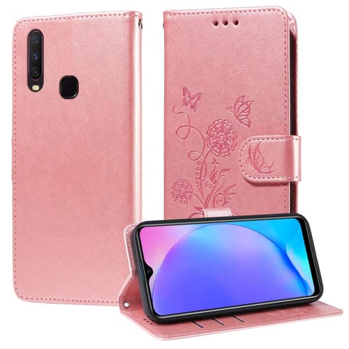 Funda de Cuero con Diseño de Mariposas y Flores En Relieve para Vivo Y17/Y15 (Oro Rosa)