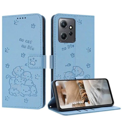 Funda de Cuero con Estampado de Gatito En Relieve para Redmi Note 12 4G (Azul)