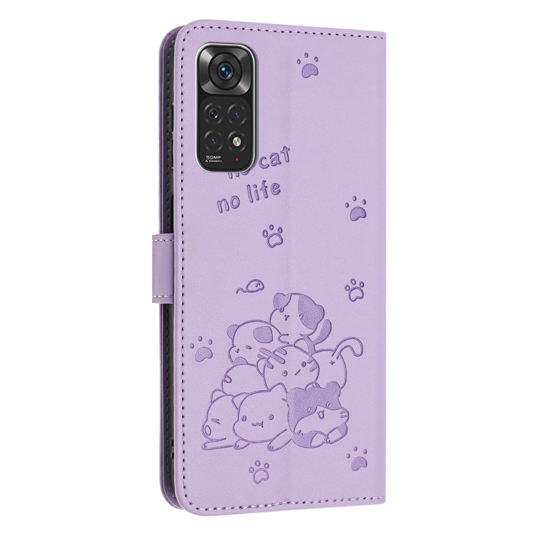 Funda de Cuero con Diseño de Gatito En Relieve para Redmi Note 12S 4G (Morado)