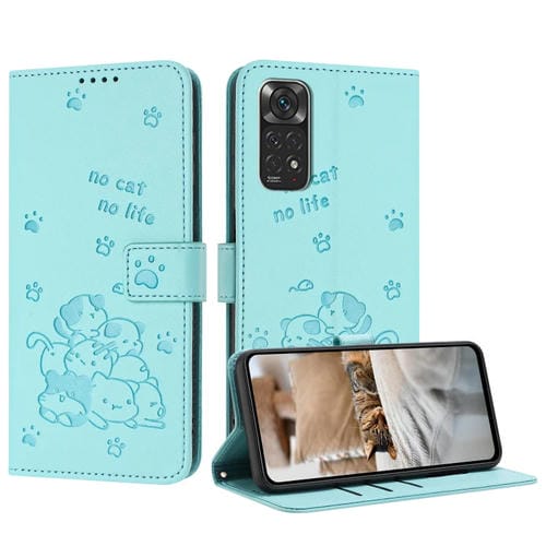 Funda de Cuero con Estampado de Gatito En Relieve para Redmi Note 12S 4G con Cordón (Verde Menta)