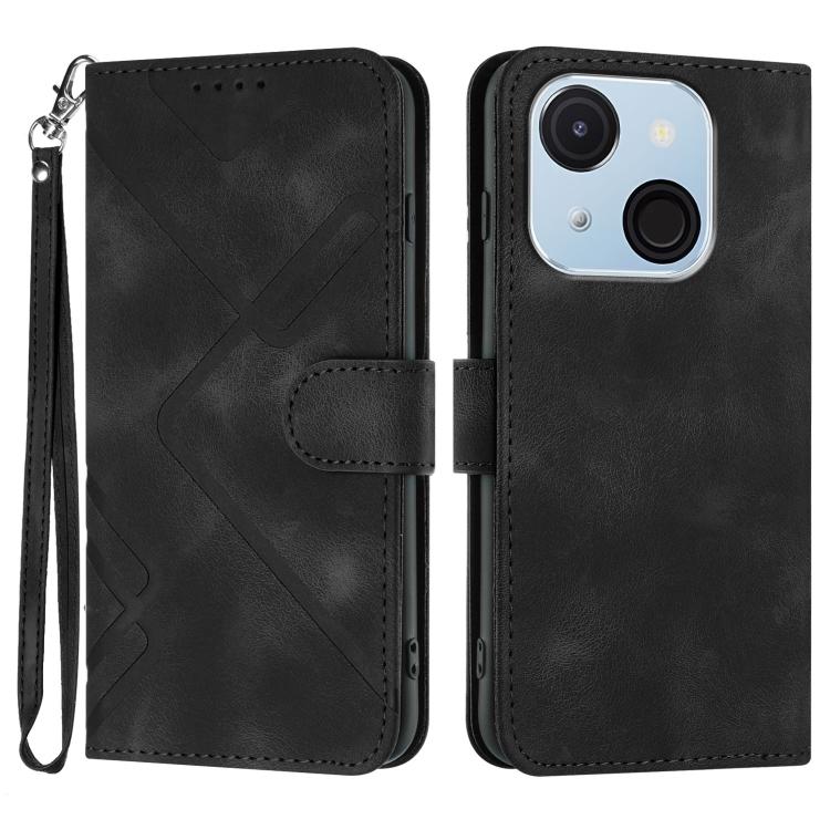 Funda de Cuero Itel A50C con Diseño de Líneas y Tacto Suave (Negra)