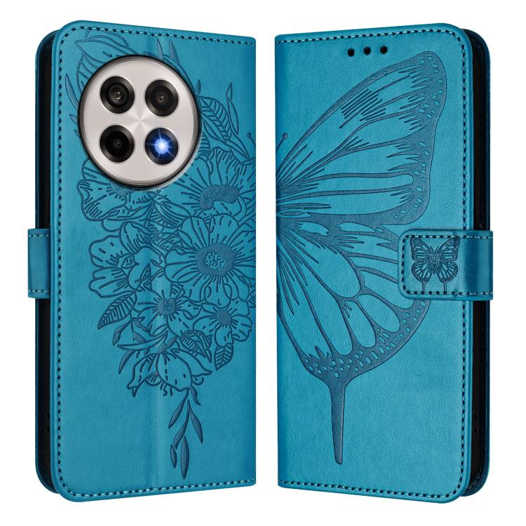 Funda de Cuero para OnePlus Ace 5 Pro y Ace 5 con Diseño de Mariposa en Relieve (Azul)