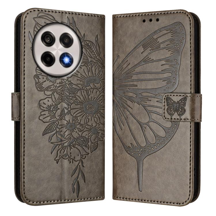 Funda de Cuero para OnePlus Ace 5 Pro/Ace 5 con Diseño Mariposa en Relieve (Gris)