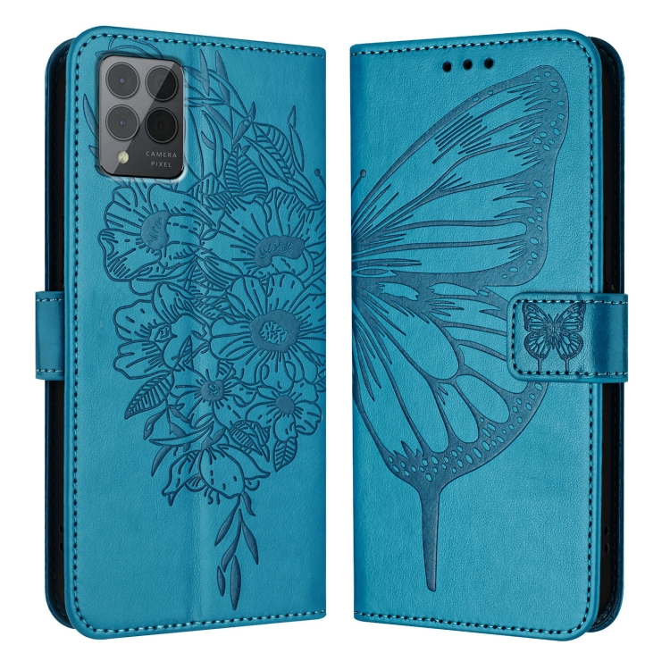 Funda de Cuero para T-Mobile Revvl 6 Pro/6X Pro con Diseño Mariposa En Relieve (Azul)