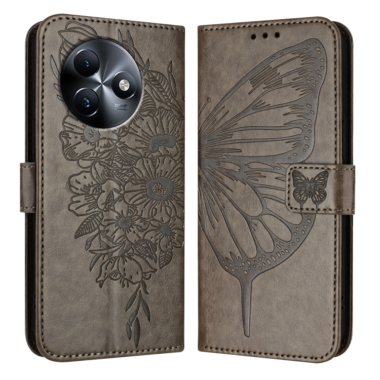 Funda de Cuero Itel S24 con Diseño de Mariposa En Relieve (Gris)