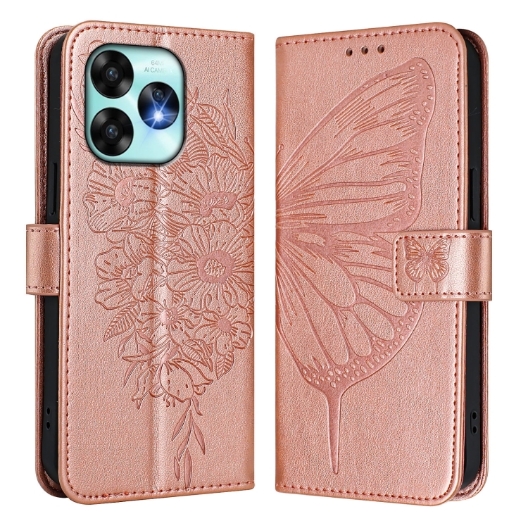 Funda de Cuero para Teléfono Umidigi A15/A15C/A15T con Diseño de Mariposa En Relieve (Oro Rosa)