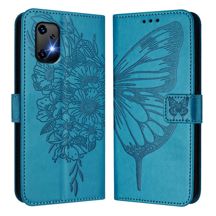 Funda de Cuero para Umidigi Bison X20 con Diseño Mariposa En Relieve (Azul)