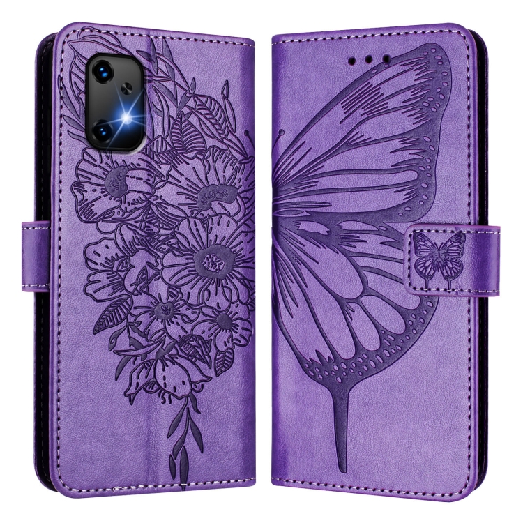 Funda de Cuero para Umidigi Bison X20 con Mariposa en Relieve (Morado Claro)