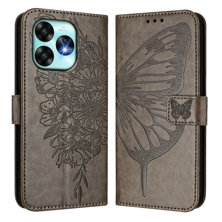 Funda de Cuero para Umidigi A15/A15C/A15T con Diseño de Mariposa En Relieve (Gris)