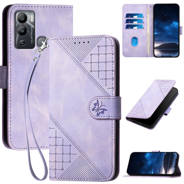 Funda de Cuero para Infinix Hot 12I con Diseño de Mariposas En Relieve y Cordón (Morado Claro)