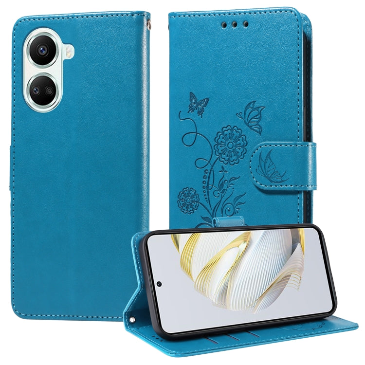 Funda de Cuero para Huawei Nova 10 Se con Diseño de Mariposas y Flores en Relieve (Azul)