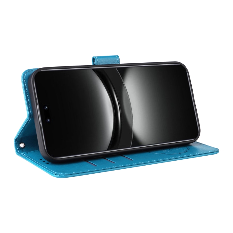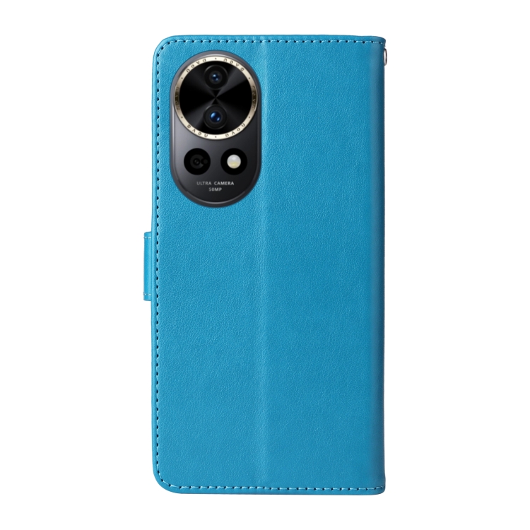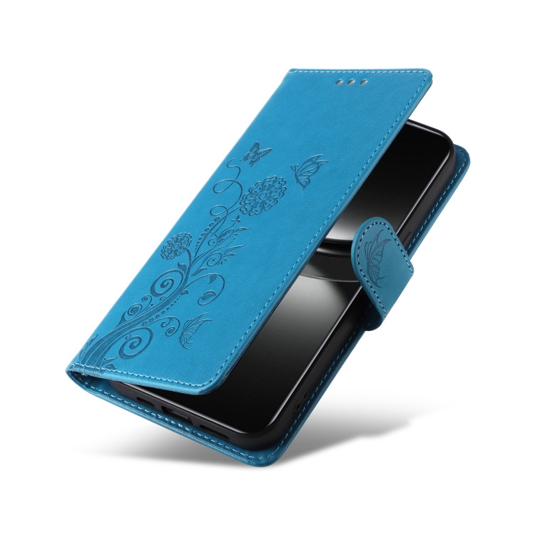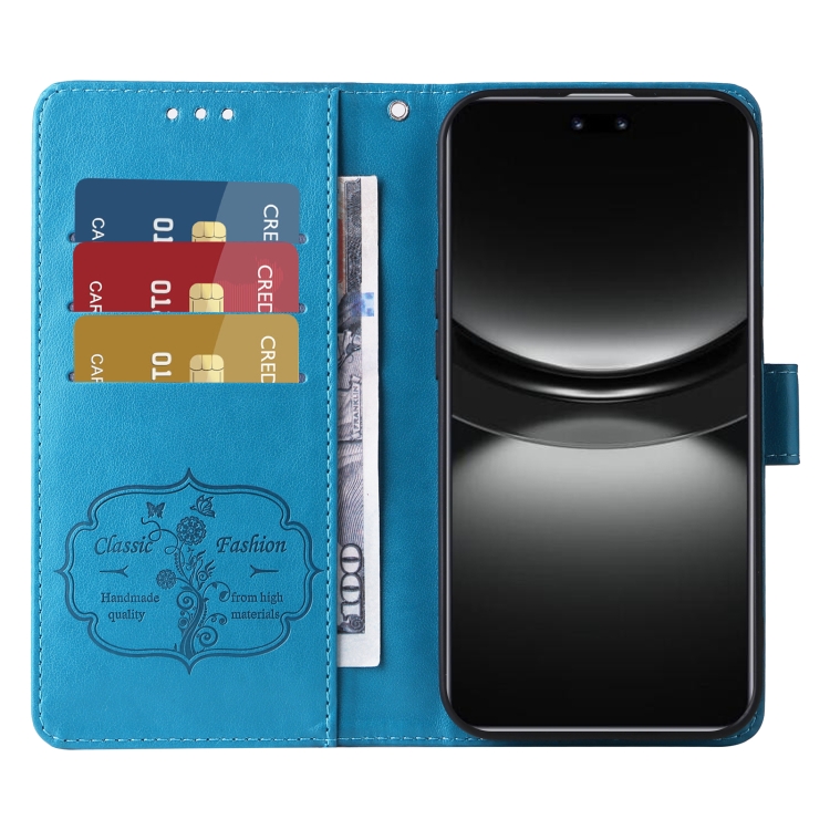 Funda de Cuero para Huawei Nova 12 Pro y Nova 12 Ultra con Diseño de Mariposas y Flores en Relieve (Azul)