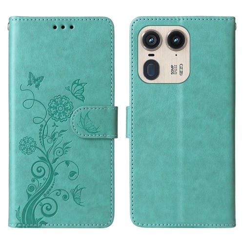 Funda de Cuero para Motorola Edge 50 Ultra X50 Ultra con Mariposas y Flores en Relieve (Verde)