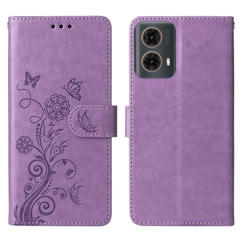 Funda de Cuero con Diseño de Mariposas y Flores en Relieve para Motorola Moto G85/S50 Neo (Morado)