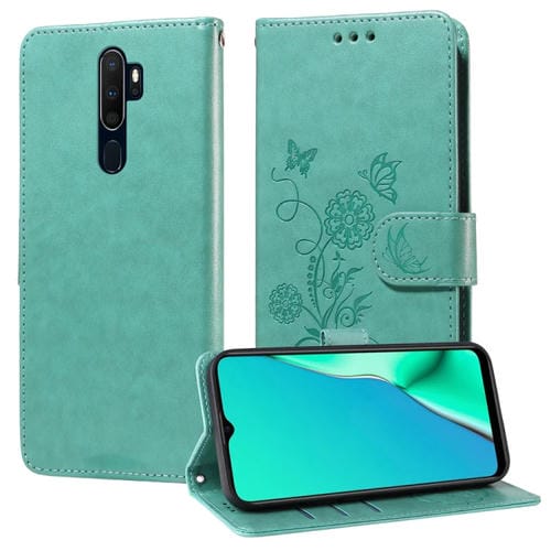 Funda de Cuero con Diseño de Mariposas y Flores En Relieve para Oppo A9 2020/A11X/A5 2020/A11 (Verde)