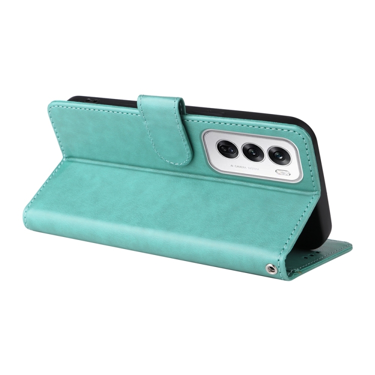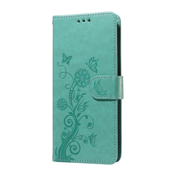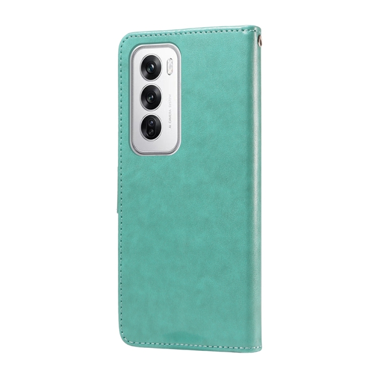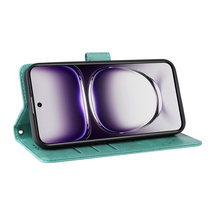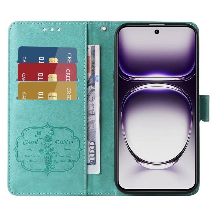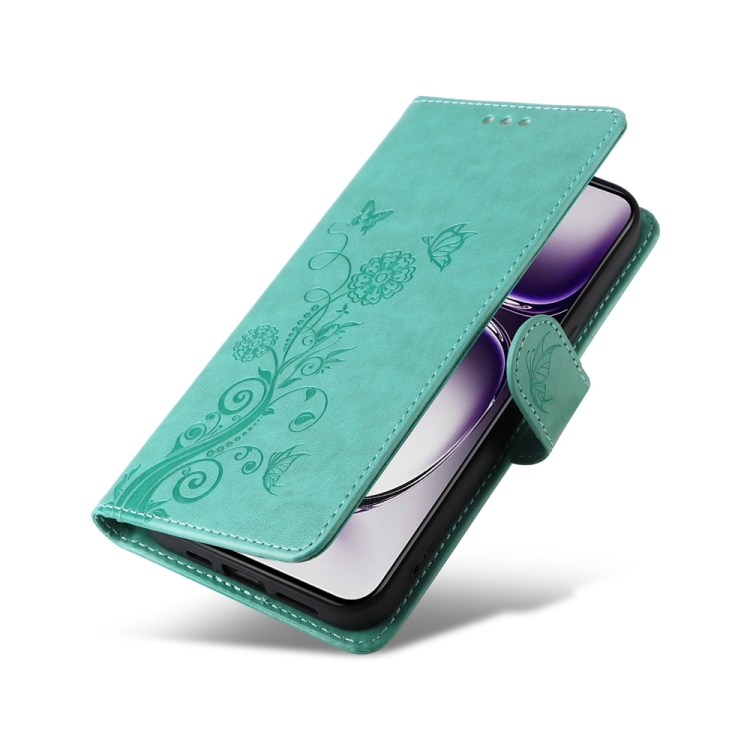 Funda de Cuero con Diseño de Mariposas y Flores En Relieve para Oppo Reno12 Pro 5G (Verde)