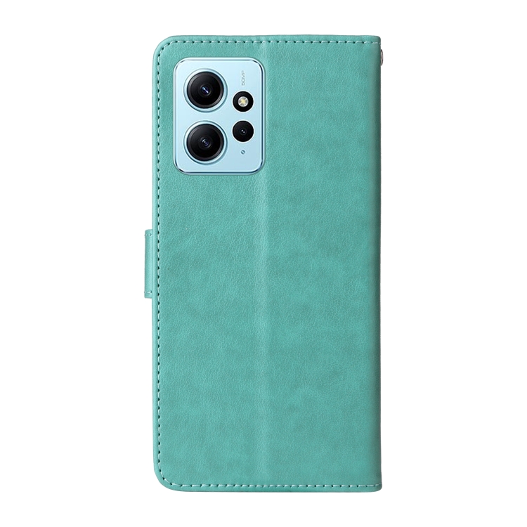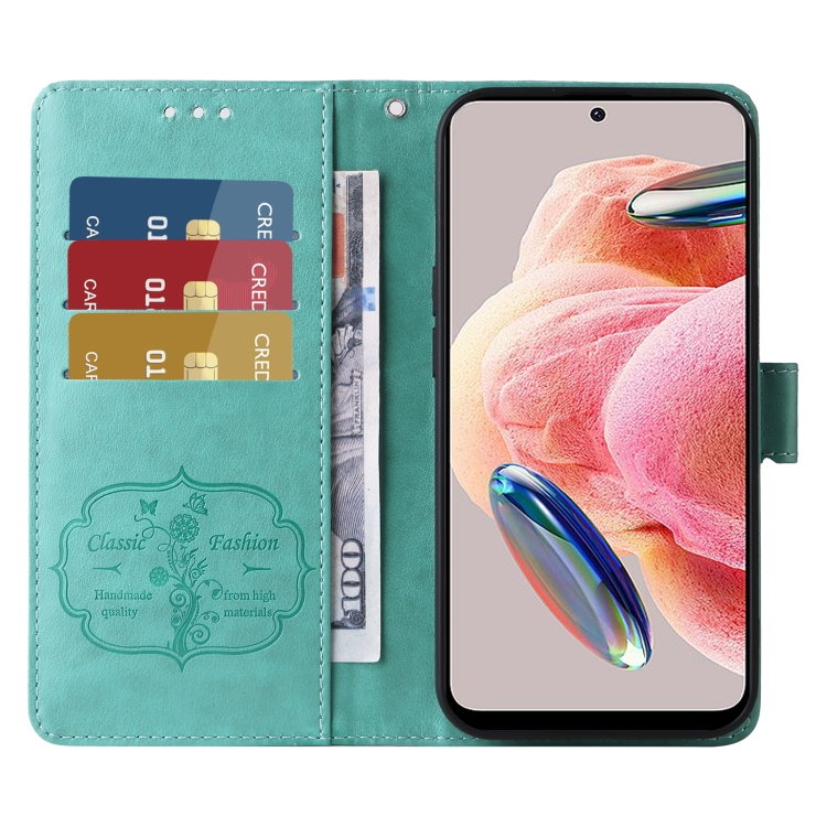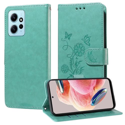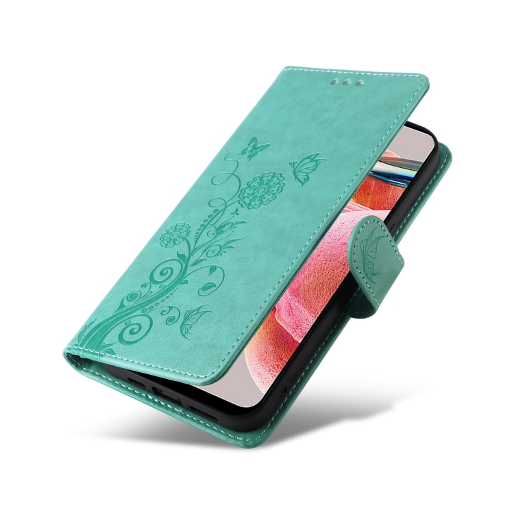 Funda de Cuero con Diseño de Mariposas y Flores En Relieve para Redmi Note 12 4G (Verde)