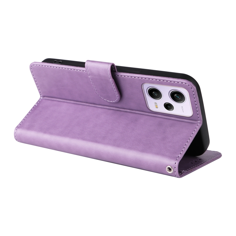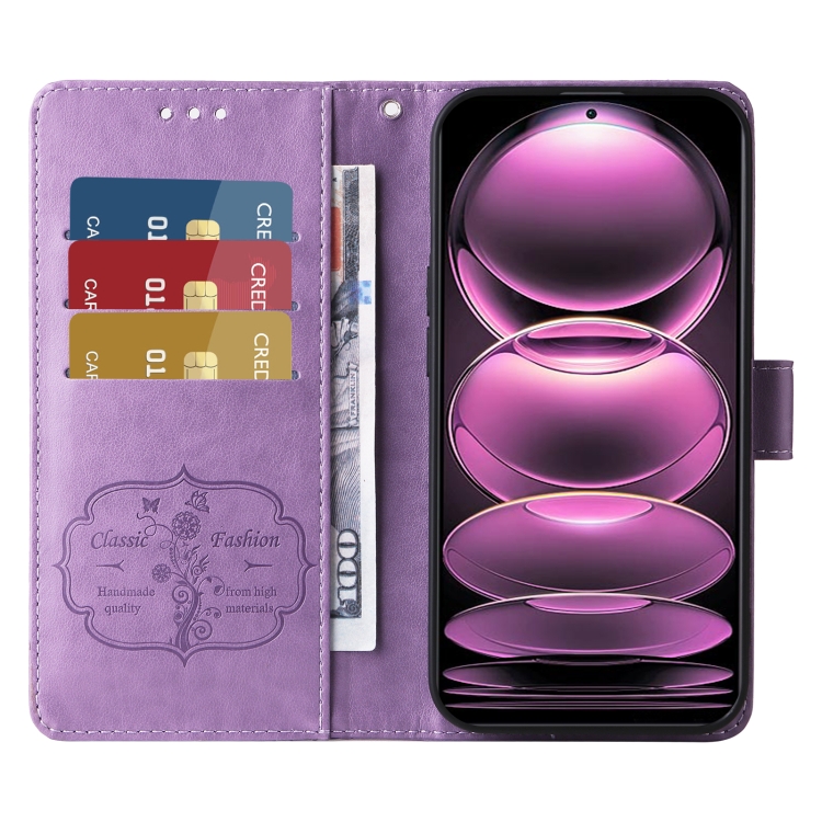 Funda de Cuero con Diseño de Mariposas y Flores En Relieve para Redmi Note 12 Pro 5G (Morado)