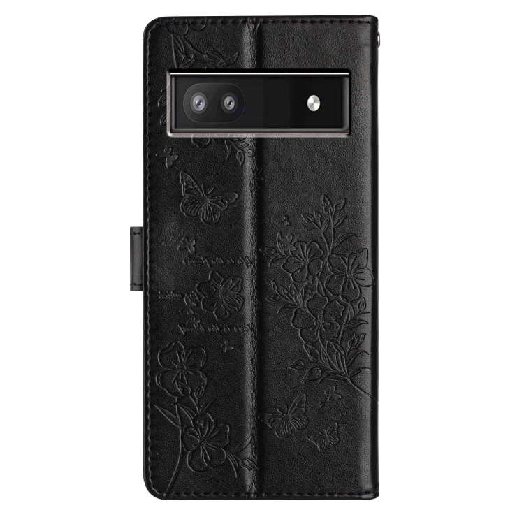 Funda de Cuero para Google Pixel 9A con Diseño de Mariposas y Flores (Negra)