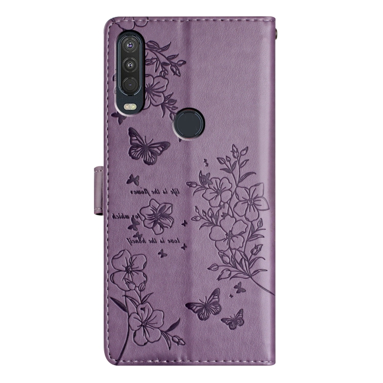 Funda de Cuero para Motorola One Action con Diseño de Mariposas y Flores (Morado)