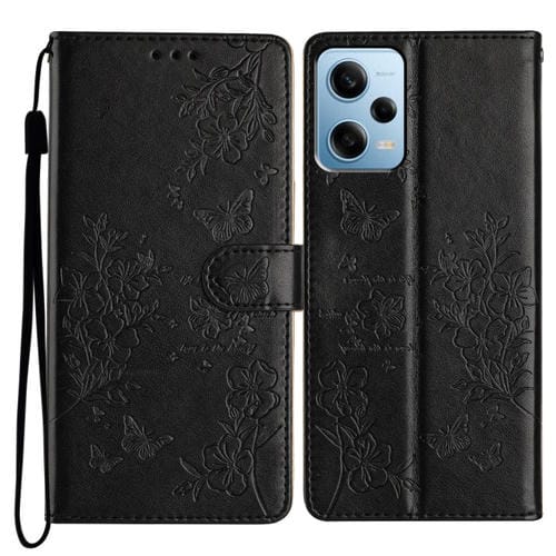 Funda de Cuero con Diseño de Mariposas y Flores para Redmi Note 12 Pro 5G (Negra)