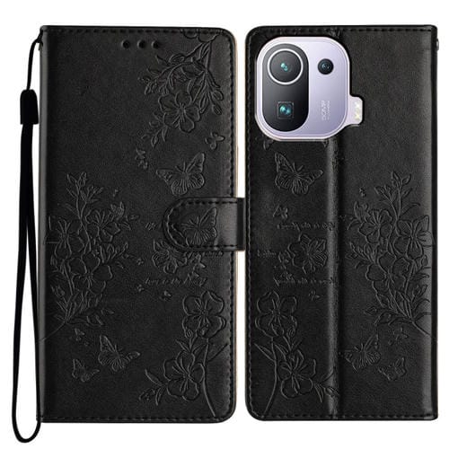 Funda de Cuero con Diseño de Mariposas y Flores para Xiaomi Mi 11 Pro (Negra)