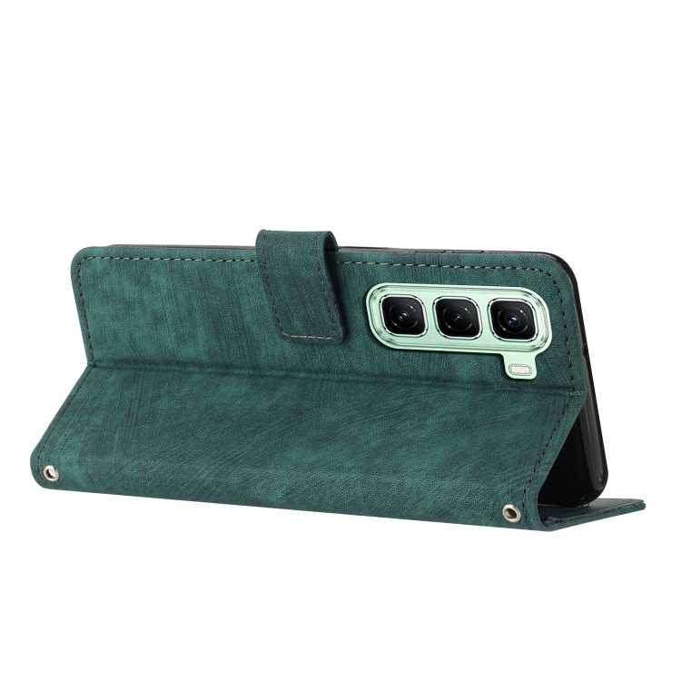 Funda de Cuero para Infinix Hot 50 4G con Diseño de Rayas y Tacto Agradable (Verde)
