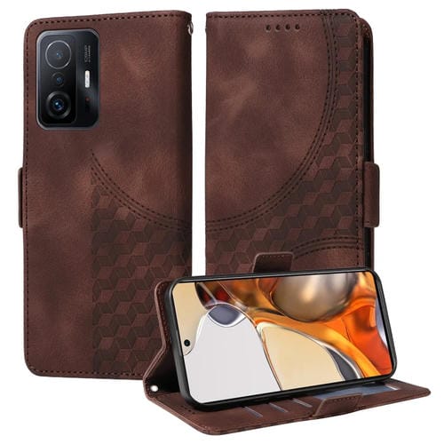 Funda de Cuero con Diseño de Rombos y Estrellas En Relieve para Xiaomi Mi 11T/11T Pro (Marrón)