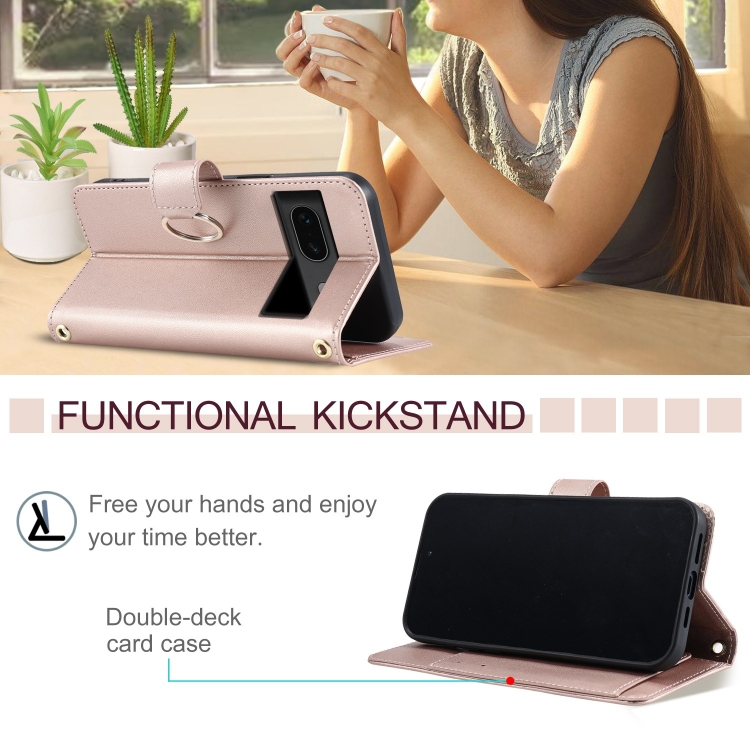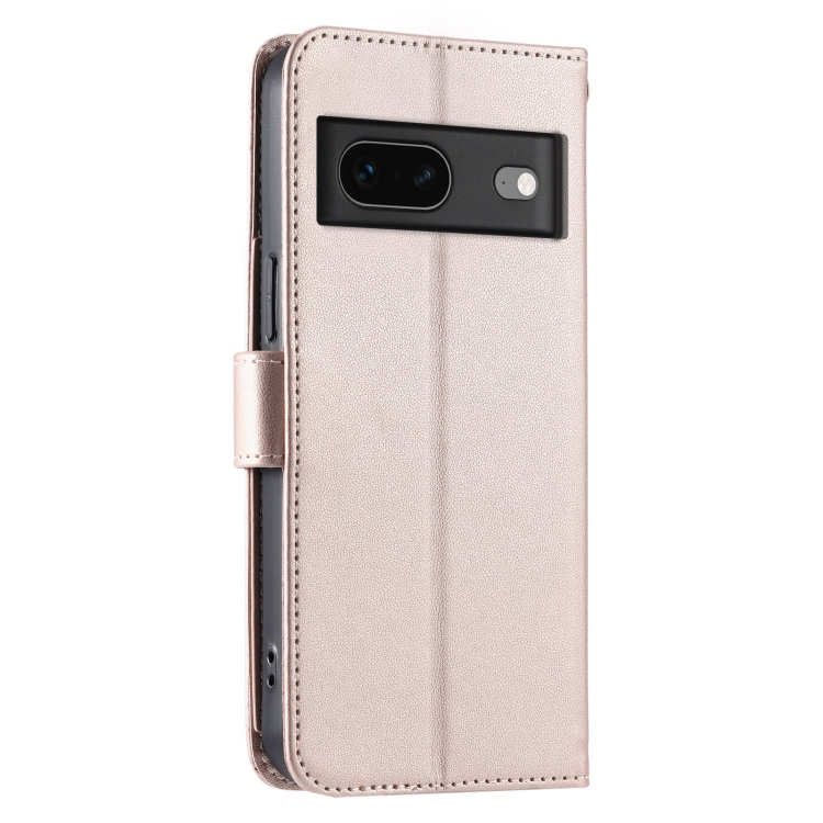 Funda de Cuero Google Pixel 7 con Diseño Rombal y Hebilla de Anillo (Oro Rosa)