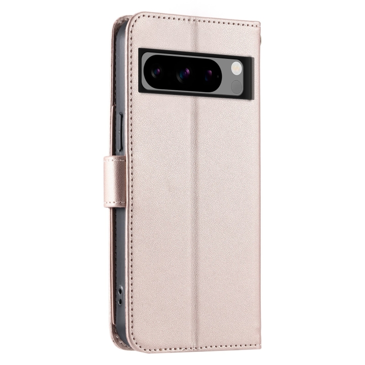 Funda de Cuero con Diseño Rombal y Hebilla de Anillo para Google Pixel 8 Pro (Oro Rosa)